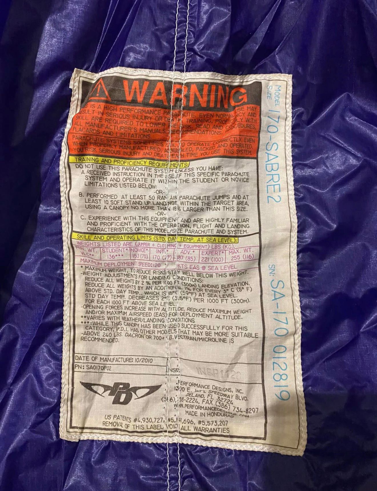 PD The Sabre2 170 most commonly refers to the 170-square-foot version of the Performance Designs (PD) Sabre2, a highly popular 9-cell semi-elliptical sport parachute canopy.